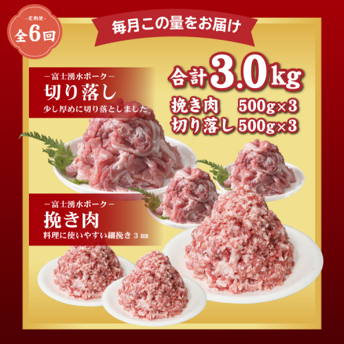 - 【9/1申し込みより冷凍発送】 <定期便>6回プラン 幻の銘柄豚 富士湧水ポーク 2か月毎に美味しいお肉が届く! 切り落とし1.5kg+挽肉1.5kg(保存に便利な真空パック)