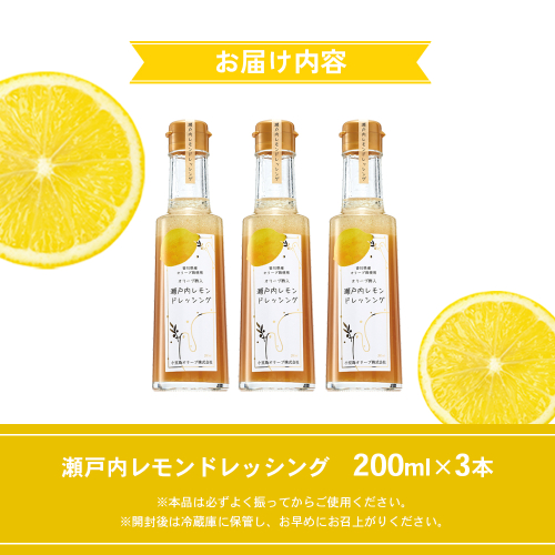 【 小豆島 】 瀬戸内レモン ドレッシング 200ml×3本 調味料 檸檬 レモン 柑橘 オリーブ 爽やか 香川 香川県 土庄 土庄町 1386695 - 香川県土庄町