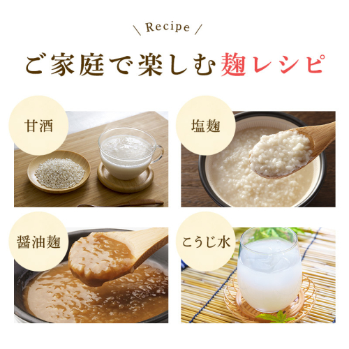 北海道産のお米にこだわった、ほくべいオリジナル『米こうじ』です。 こうじには多くの酵素が含まれ、食べ物の消化・吸収を助ける役割があります。こうじに含まれる酵素は、その数30種類以上とも言われており、まさに「酵素の宝庫」と言えます! 飲む点滴と言われる「甘酒」に、万能調味料の「塩こうじ」、腸内環境を良くする「こうじ水」など用途は様々!(オリジナルレシピ付き) ■生産地 網走産