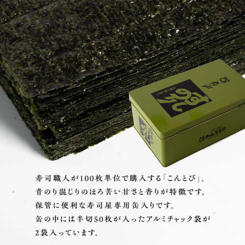 ミシュラン星付きのプロが愛用する 丸山海苔店 【こんとび(半切100枚 寿司屋専用缶入)】 のり 寿司 海苔 寿司職人 こんとび 手巻すし 家庭用 高級 プレミアム ミシュラン 三ツ星 プロ 丸山海苔 美味しい おいしい おにぎり ごはん [AV07-NT]