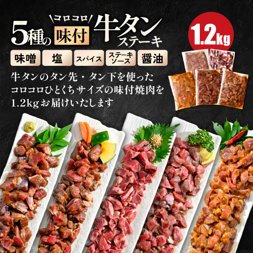 5種の味付け 牛タン コロコロ ステーキ 1.2kg(小分け5袋)【NS0000024】
