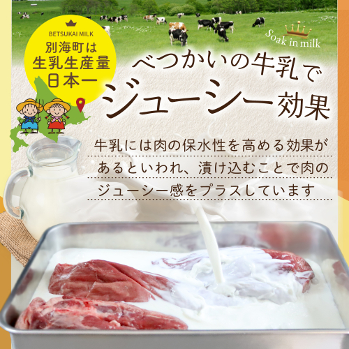 別海町産の牛乳にじっくりと漬け込み、熟成させた柔らかい牛タンです。