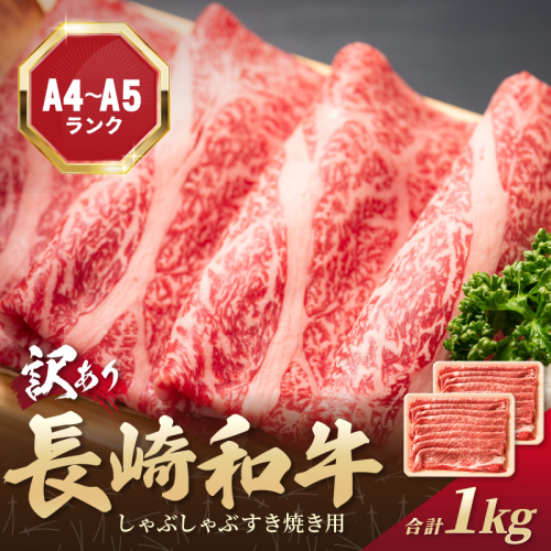 訳あり!【A4~A5】長崎和牛しゃぶしゃぶすき焼き用(肩ロース肉・肩バラ・モモ肉)1kg(500g×2p)( 牛肉 和牛 おすすめ しゃぶしゃぶ すき焼き 牛肉 冷凍 国産 送料無料 肉 プレゼント 小分け お取り寄せ 美味しい )【B8-036】