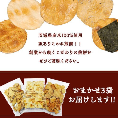 【 訳あり 】 こしひかり こわれ煎餅 おまかせ 3袋入 割れせんべい せんべい セット 菓子 お菓子 米菓子 おやつ コシヒカリ [BC008ci] 1390537 - 茨城県筑西市