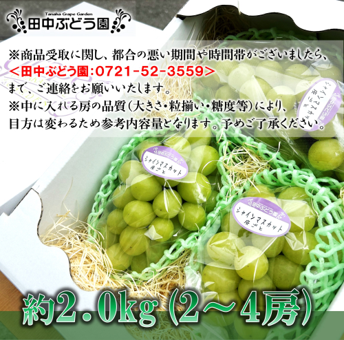 - 厳選朝採りシャインマスカット 約1.8~2.0kg(2~4房)シャインマスカット ぶどう詰め合わせ ぶどう ブドウ 果物 フルーツ 田中ぶどう園 大阪 河内長野 マスカット 種なし