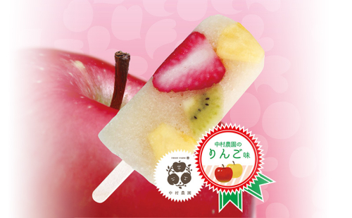長野県内のイチゴ・ブドウなど、厳選した季節のフルーツが詰まった手作りアイス。フルーツをよりおいしくお召し上がりいただけるよう、個々に丁寧に下ごしらえを行い、1本のアイスに閉じ込めました。ゼラチンを使用しアイスをコーティングすることで、鮮度と解け落ちる速度を改善し、旬のフルーツの美味しさをそのままお届け致します。中村農園の濃厚な100%りんごジュースを贅沢に使用したリンゴ味を含め、その他オレンジ味・マスカット味・ベリーソーダ味・イチゴヨーグルト味の中からその時期おすすめの8本セットでお届け致します。甘味料(国産オレンジの仕込みに氷砂糖は使用)・添加物なしでお子様も安心してお召し上がりいただけます。(イチゴヨーグルト味にはハチミツを使用しているため、1歳未満のお子様のご飲食にはご注意ください。)