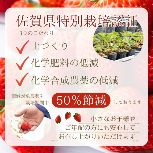皆さまに美味しく召し上がってほしいと、土づくりや肥料にこだわり、「佐賀県特別栽培」を認証しました。