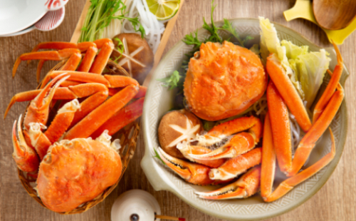 流氷がはぐくむ豊かな海で、毛ガニ・ズワイガニ・タラバガニの三大ガニのほか、ホタテ、鮭などの豊富な魚介類を味わえます。