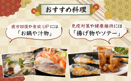 ビタミンB12やDHAも豊富で、健康にも嬉しい一品で、煮物・焼き物・フライなど、シンプルな味付けで素材の味を生かした料理や鍋物・ムニエル・煮付けなど、様々な調理法でお楽しみいただけます。