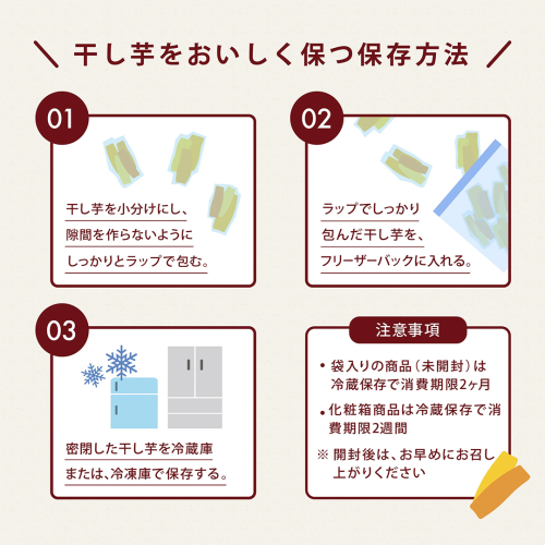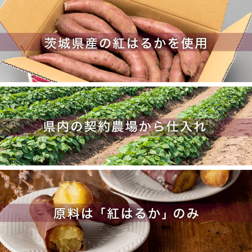 ねっとりと甘みの強い「紅はるか」の干し芋は洋菓子に近い風味もあり、ミルクや紅茶との相性も抜群です。