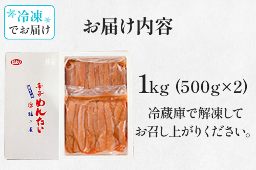 訳あり 無着色辛子めんたい 1kg(500g×2) 無着色 おつまみ おかず ご飯 白米 冷凍 魚卵 福岡県 福岡 九州 グルメ お取り寄せ 福さ屋 CR003