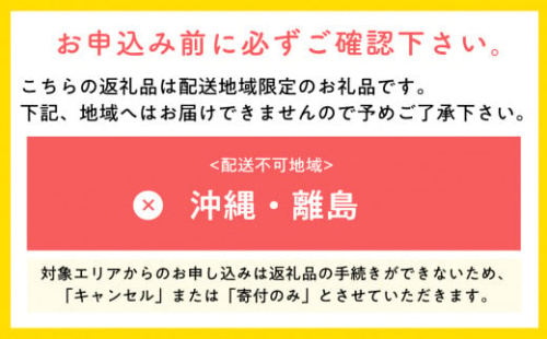※上記のエリアからの申し込みは返礼品の手配が出来ないため、「キャンセル」または「寄附のみ」とさせていただきます。予めご了承ください。