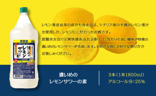 サッポロ 濃いめの レモンサワー の素3本 セット(1本1800ml) お酒 洋酒 リキュール類 レモン サワー 檸檬 1450182 - 岡山県赤磐市