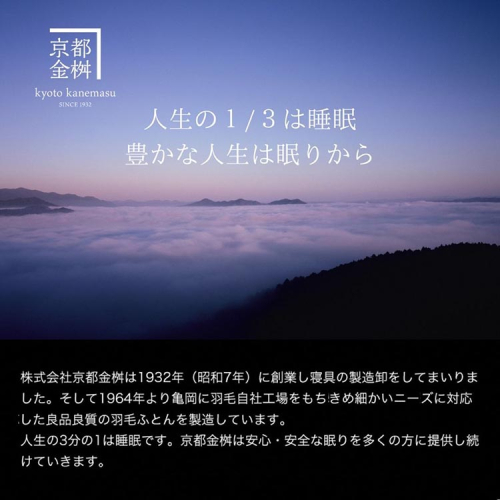株式会社京都金桝ではきめ細かいニーズに対応し、熟練の職人が1枚ずつ丁寧に手作りした良品良質の羽毛ふとんをお届けしています。