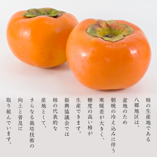 柿の生産地である八郷地区は、盆地のため朝晩の冷え込みに伴う寒暖差が大きく、糖度の高い柿が生産できます。