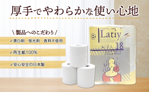 ダブル 《訳あり》 トイレットペーパー 【レティ】 ダブル 27.5m × 72ロール 日用品 消耗品 リサイクル 再生紙 無香料 厚手 ソフト トイレ用品 備蓄 ストック 非常用 生活応援 川一製紙 送料無料 岐阜県 美濃市