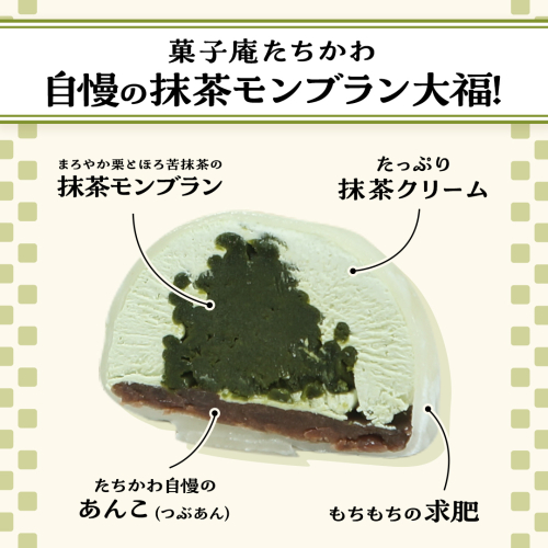 - 【 菓子庵たちかわ 】 抹茶 モンブラン 大福 5個 ( 5個入 × 1箱 ) 手作り もちもち スイーツ お茶 茶 栗 くり もち フルーツ 果物 和菓子 菓子 お菓子 餡子 あんこ [AY013ci]