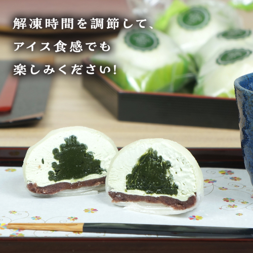 一口食べれば、柔らかい求肥の中でほろ苦い抹茶の風味が一気に広がり、その中で栗のやさしい甘さ、ねっとりとした食感、そして濃厚な小豆の味わいがお楽しみいただけます。
