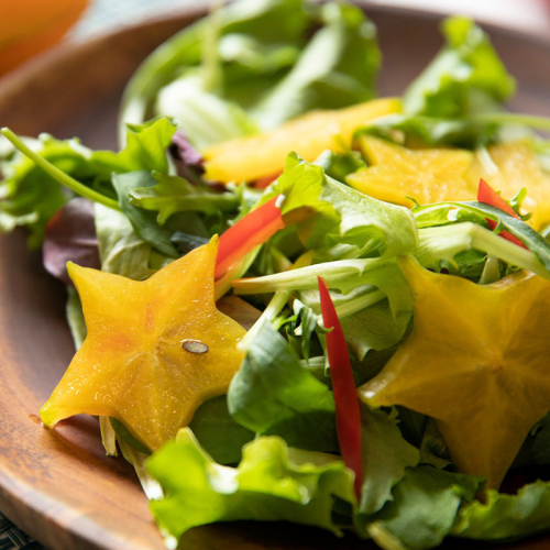 断面が星の形をしたスターフルーツ、和名が「五歛子(ごれんし)」と呼ばれる、カタバミ科ゴレンシ属に属する柑橘系果物です。