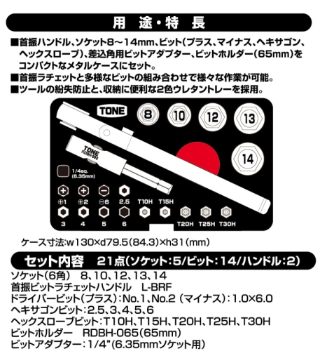 ソケットビットLEDセット A-SBRLTS 工具 TONE トネ 15001-40000946