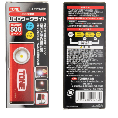 連続使用時間:側面点灯 約2時間(Hi)/約5時間(Lo)