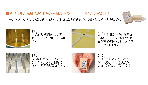 熱を加えずに自然に原料を熟成させてせっけんを作る「コールドプロセス製法」で、馬油職人が手作りしています。レモンマートル精油のレモンのような爽やかな香りで、気分もさっぱりします。