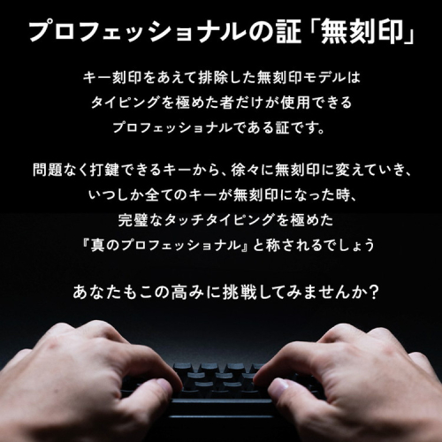 また、プロフェッショナルの証である「無刻印」キートップセット付きです。ぜひ「無刻印」にチャレンジしてください。