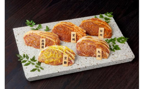 5種類の味噌だれ(北海道、宮城、信州、京都、九州)で漬け込みました。