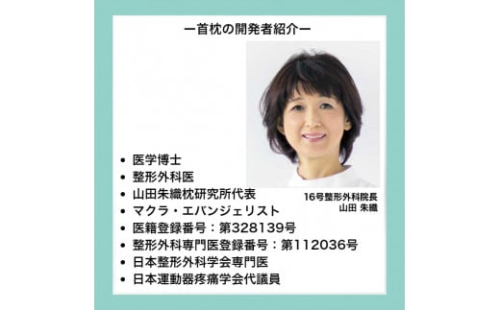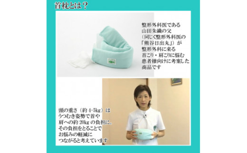 整形外科医である山田朱織の父(同じく整形外科医の熊谷秀丸が整形外科に来る首こり、肩こりに悩む患者様向けに考案した商品です。頭の重さはうつむき姿勢で首や肩への約20kgの負担に。その負担をとることでお悩みの軽減につながると考えています。