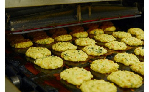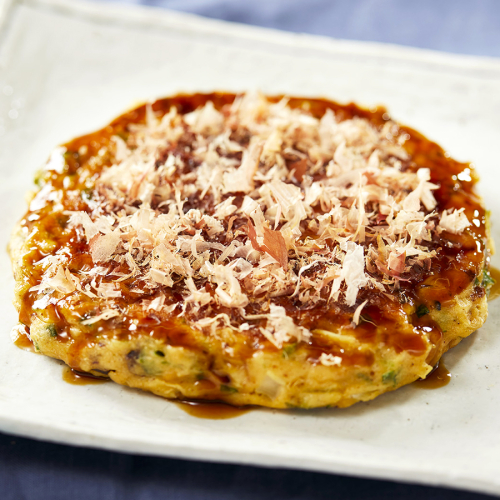 国産野菜を使用し、SD食品独自の製造方法により、ふっくらとした食感に仕上げています。また、天かすはSD食品内の工場で揚げており、米油を使用しているため軽い食感が特徴です。原材料と製造にこだわった冷凍お好み焼きを、ぜひご賞味ください。