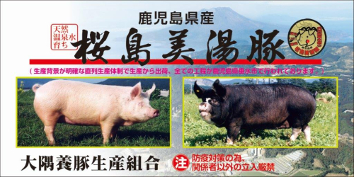 「桜島美湯豚(さくらじまびゆうとん)」は、地下約1,300mより発掘された天然温泉水と、山の湧き水をブレンドして、飼育している全ての豚に与えています。