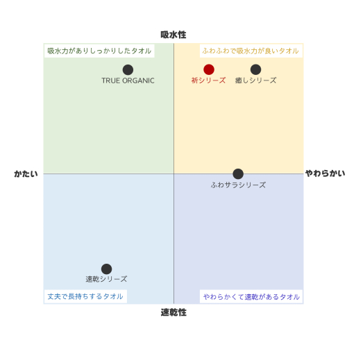 本製品のこだわりは、「抜群の吸水性」「やわらかな肌触り」「洗濯する度にふわふわ」です。