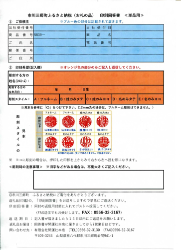 ※お彫りする文字を記入していただく注文書につきましては