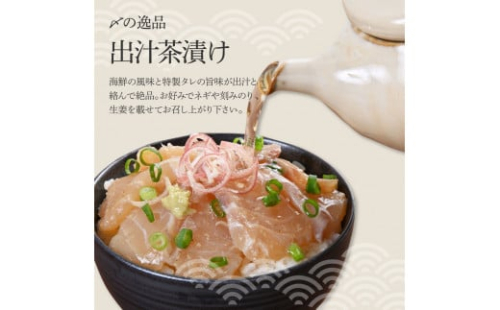 解凍しご飯にかけるだけで、漁師町でしか味わえないような新鮮な漬け丼がいただけます。お好みで、ネギ、刻みのり、わさび等を載せてお召し上がり下さい。お茶漬けとしてもお召し上げり頂けます。