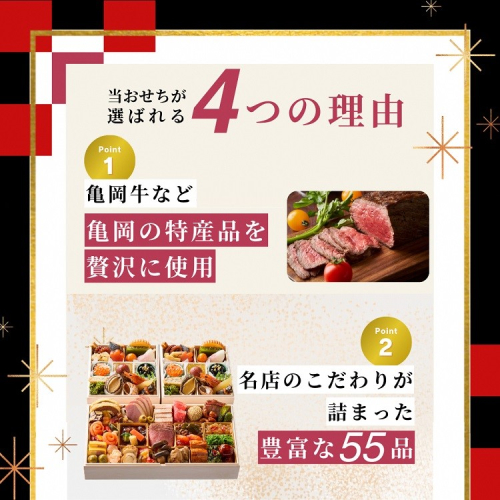 - おせち 冷蔵 京都 三千院の里&マノワール 個食・オードブル 亀岡市限定≪55品目 盛り付け済み 解凍不要 2人前 和洋中 洋風 亀岡牛 お節 2026 人気 おせち料理≫※12月31日配送 ※北海道・沖縄・離島へお届け不可