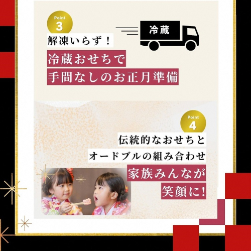 冷蔵おせち、重箱付、盛付済のおせちです。