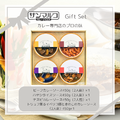 関西の有名百貨店などで展開する「カレーハウスサンマルコ」の香り高いヨーロピアンカレーを長期保存できるギフトセットに致しました。