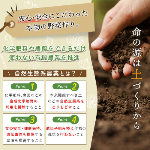 30年以上にわたり、自然の生態系を活かした農業に取り組んでいる綾町、肥沃な土壌で育った、四季折々の旬野菜を是非ご堪能ください。