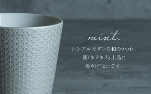 mint.シリーズは、400年もの間守ってきた伝統・技術と進化によってできた有田焼といえます。現代の技術できめ細かな麻の葉彫りを施し、熟練の上絵職人が丁寧に手描きしたカップです。その佇まいは、愛らしく上品で、それでいて実用的。カップの軽さや彫りの美しさを、ぜひ体感していただきたい「シンプルモダンな和のうつわ」です。