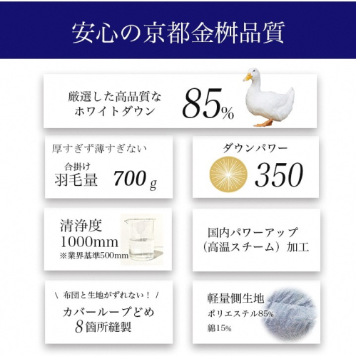 - ・総重量:約1.5kg(内、羽毛量700g)
