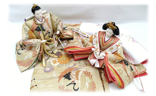 ひな人形にしてみたい着物・帯地をお送り又はご持参いただければ、担当スタッフとの打ち合わせの上人形の着物に仕立て上げます。