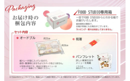 - おせちオードブル トレー1段(2人前)、祝箸、お品書き・解凍方法
