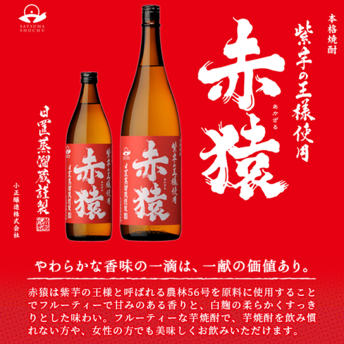 赤猿:紫芋の王様「農林56号」を使用。女性にも飲みやすい芋焼酎。白麹。