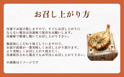 脂がのったのどぐろを自社で加工しました。白いご飯がすすむ! これだけあると満足なおうちごはんに! 無添加にこだわり加工し、味付けは魚の旨味を引き立てる塩のみで仕上げています。 【調理方法】 冷凍でお届け致しますので、すぐにお召し上がりにならない場合は冷凍庫で保存をお願いします。 冷蔵庫で解凍し焼いてお召し上がり下さい。 無添加にこだわり加工していますので、お届け直後が一番美味しくお召し上がり頂けます。 より美味しくお召し上がり頂きたく、冷凍保存された場合でもお早目にお召し上がり下さい。 【賞味期限】 発送日から30日 【保存方法】 冷凍 【地場産品類型】 原料の解凍、魚を開く、塩水に漬ける、おりに並べる、冷風乾燥、袋詰め 【関連キーワード】 アカムツ 赤むつ 干物 おかず 無添加 つまみ 酒の肴 ごはんのお供 干もの 乾物 魚介 高級魚 富山 氷見