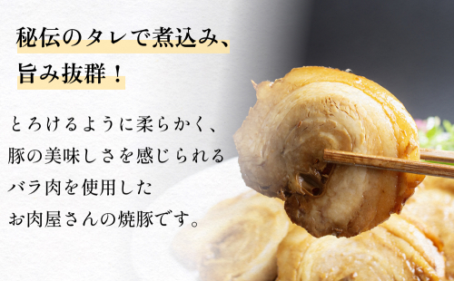 脂身がとろけるように柔らかく、豚本来の美味しさを感じられる豚バラ肉を使用したお肉屋さんの焼豚です。