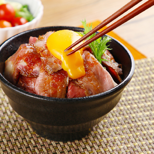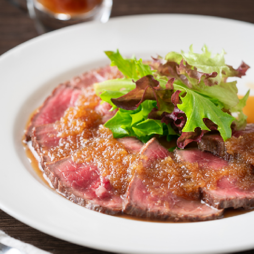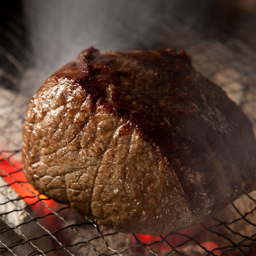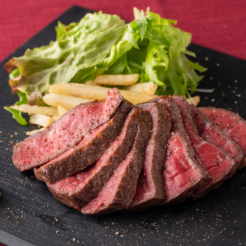 肉の外側がこんがりと焼き色がつき、内側はミディアムレアの状態に仕上げられ柔らかくジューシーな食感と濃厚な味わいが特徴。