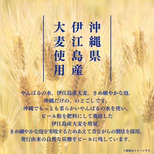 ●伊江島産大麦使用 …地元のビール会社として、地域活性化へ貢献し、またオリオンらしさを強化するために伊江島産大麦を使用。