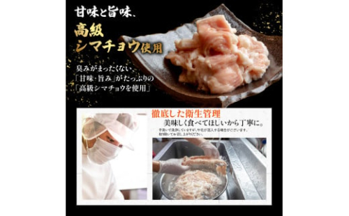 モツは高級シマ腸を使用し、100gずつ小分けしておりますので使い勝手抜群です。