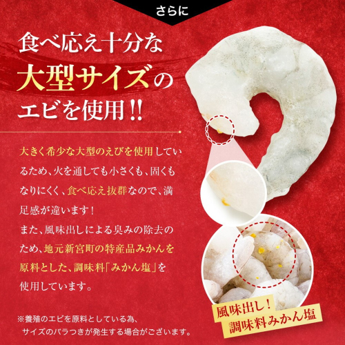 ※養殖のエビを原料としている為、サイズのバラつきが発生する場合がございます。