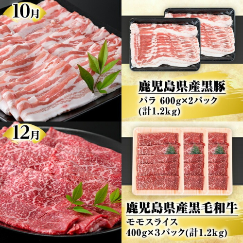 <定期便・全6回(偶数月)>鹿児島県産黒毛和牛・黒豚定期便(総量約5.2kg)国産 九州産 鹿児島産 牛肉 国産牛 豚肉 サーロイン ステーキ 切り落とし 切落し カルビ 焼肉 焼き肉 焼肉セット 黒豚 バラ肉 すき焼き しゃぶしゃぶ 頒布会【スターゼン】akn042-28